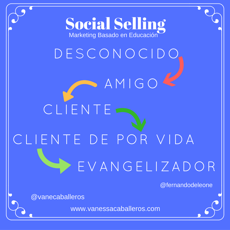 Debes tomar en cuenta que tu red de contactos te ayudará a captar más clientes, pero recuerda que todo esto lleva un proceso; es aquí donde quiero citar textualmente lo que enseña Fernando de Leon en su programa de Social Selling, la base del Social Selling es el MBE (Marketing Basado en Educación):